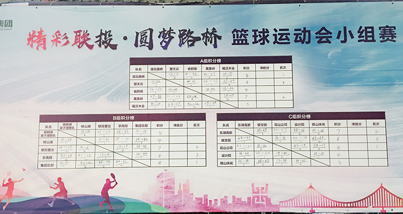 籃球小組賽圓滿落幕,為第二屆聯投杯職工運動會起到了"熱身"動員的作用。緊張、刺激、精彩的決賽階段開戰在即,8支隊伍會有哪些新的變化,新的套路,讓我們有新的看點?湖北路橋有著主場優勢,能否趁熱打鐵衛冕成功,還是其他隊伍絕地反擊,欲扮黑馬?讓我們一起為公司加油。湖北路橋,加油!