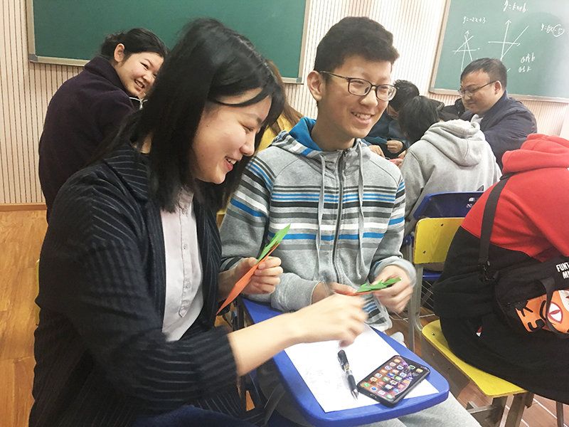 志愿者與同學們一對一結伴并通過紙筆相互交流,手把手教這些孩子們做折紙,青蛙、兔子、胡蘿卜、大象、揚帆遠航號……這些可愛的折紙作品唯妙唯俏;“你演我猜”游戲更是將歡樂的氛圍推向了高潮,在聾生們的生動演繹和志愿者們的默契配合下,高手層出不窮,全程笑點不斷。