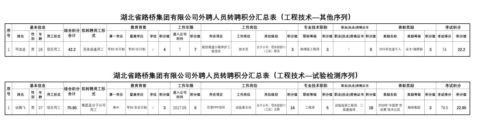 湖北省路橋集團有限公司2022年擬轉聘人員公示