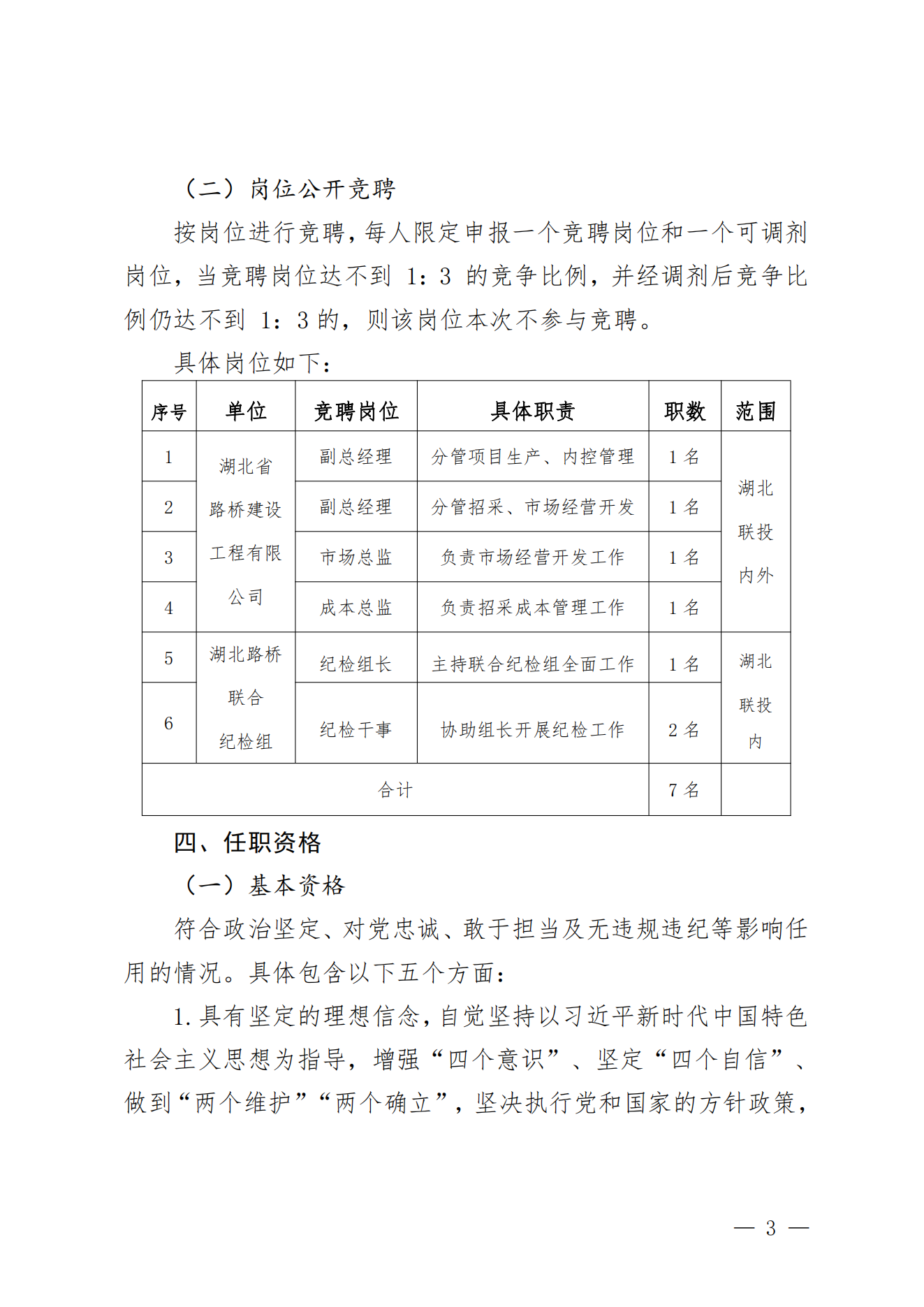 人才強(qiáng)企丨湖北省路橋集團(tuán)有限公司下屬橋隧公司經(jīng)營(yíng)層團(tuán)隊(duì)組閣競(jìng)聘考察對(duì)象的公告