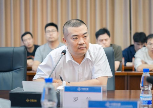 交流會上,羅航對朱紅明一行的到訪表示熱烈歡迎,并分享了項目在技術創新、施工管理、重難點施工工藝解決思路等方面的經驗做法。圍繞一體化智能筑塔機爬升系統和養護系統的原理及工效、鋼筋部品整體吊裝與連接工藝、主塔施工線形和混凝土質量控制、不同垂度四主纜及吊桿施工控制、項目施工管理與技術策劃等問題,羅航與觀摩人員進行了探討交流。