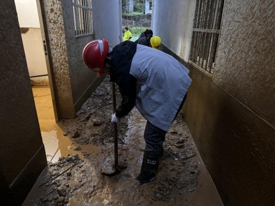 4月以來,安徽省休寧縣氣象臺發(fā)布暴雨紅色預(yù)警信號,休寧縣迎來多輪強降雨。湖北路橋德上高速皖贛界段01標(biāo)六工區(qū)因地勢低洼,部分施工路段出現(xiàn)嚴(yán)重積水。項目部附近五城鎮(zhèn)、商山鎮(zhèn)等地降水量驟增,多處出現(xiàn)山體滑坡和泥石流災(zāi)害,道路被淤泥掩埋寸步難行,大量淤泥涌入居民家中,嚴(yán)重威脅當(dāng)?shù)鼐用裆敭a(chǎn)安全。面對多輪惡劣天氣,湖北路橋德上高速皖贛界段01標(biāo)項目部迅速啟動抗洪防汛應(yīng)急預(yù)案,多措并舉,全力筑牢抗洪防汛“安全堤壩”。