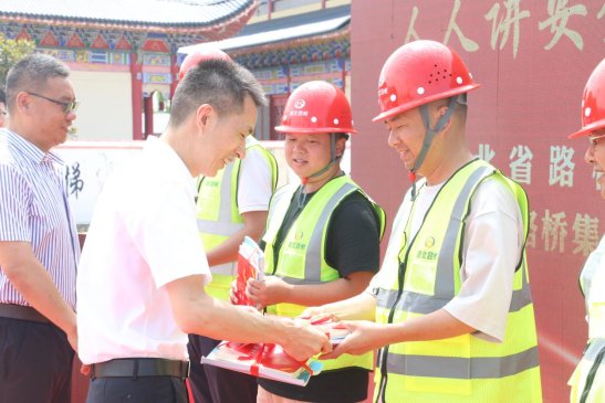 6月3日,湖北路橋以“人人講安全 個個會應急——暢通生命通道”為主題,在漢川項目群順利舉行2024年“安全生產月”活動啟動儀式。湖北路橋副總經理馬倫權、安全總監朱盾,漢江國投監事長肖俊濤,湖北路橋橋隧公司總經理張清利及湖北聯投安全環保部相關代表等出席啟動儀式。