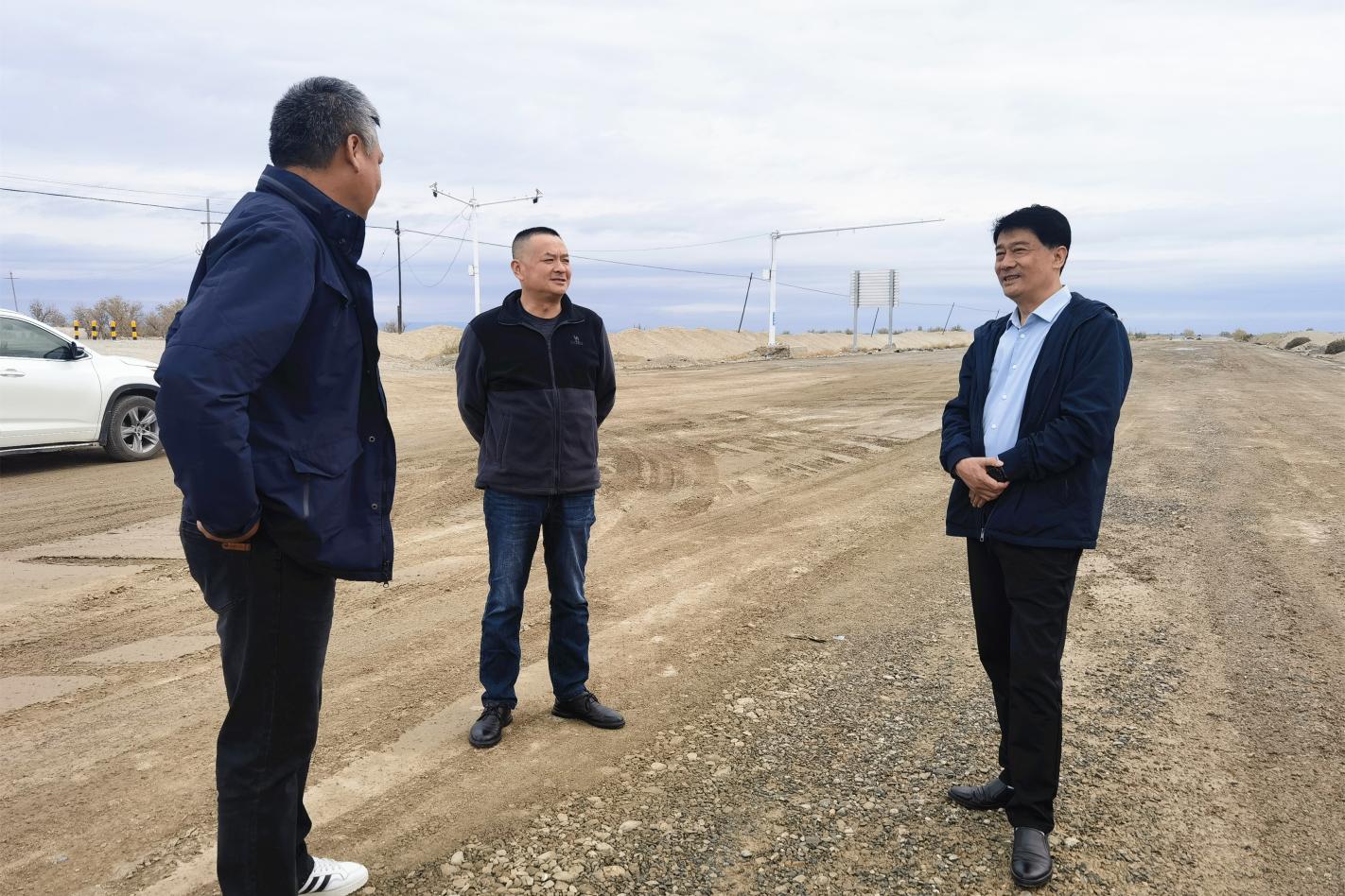 在呼圖壁項目,張保江一行深入施工現(xiàn)場,詳細了解項目路基、橋梁、涵洞、路面等施工進展情況。他強調(diào),今年以來,新疆雨水天氣增多,呼圖壁項目建設時間緊、任務重,要在確保工程質(zhì)量和施工安全的前提下,加快推進項目建設。